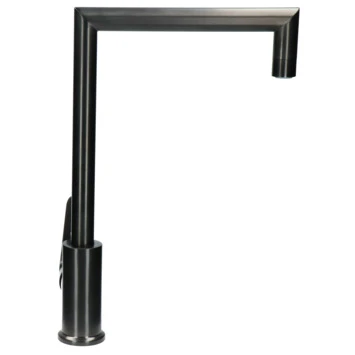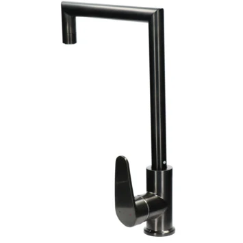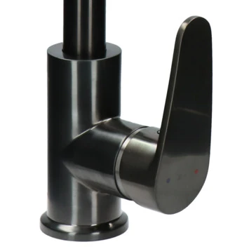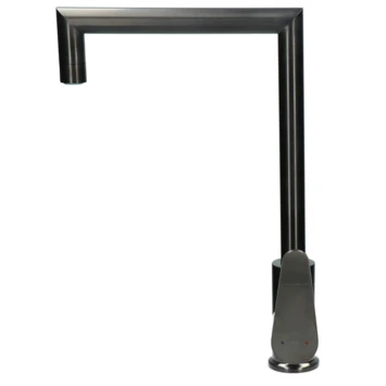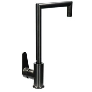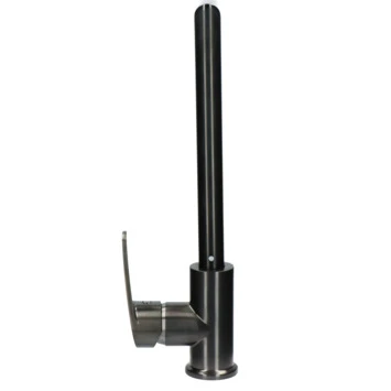 De Absolut keukenkraan Fasso met hendel Grafiet is een blikvanger in je keuken met de hoge hoekige U-vormige uitloop. De strakke vormgeving en grafietkleurige afwerking passen perfect in jouw landelijke of industriële keuken. De kraan kun je ook verkrijgen in zwart of chroom. Met de kraan ga je ook in de tijd mee door de ingebouwde waterbespaarder in de sproeikop. Zo bespaar je op je waterverbruik. Dat is niet alleen goed voor het milieu, maar ook voor je portemonnee. De hoogte van maar liefst 48 cm in combinatie met de 360° draaibaarheid van de uitloop zorgen dat je veel ruimte in je gootsteen hebt. Handig als je een grote pan moet vullen! Met de eenhendelbediening meng je eenvoudig met 1 hand het water naar de gewenste temperatuur. De keramische schijven maken draaien soepel en nauwkeurig en vergen bovendien weinig onderhoud. Ook veeg je kalk eenvoudig met je vingers van de uitloop af doordat vuil en kalk zich niet makkelijk hecht aan de siliconen noppen in de sproeikop. Met de meegeleverde flexibele aansluitslangen en bevestigingsmateriaal sluit je deze kraan eenvoudig zelf aan. Op de kraan krijg je 5 jaar garantie.