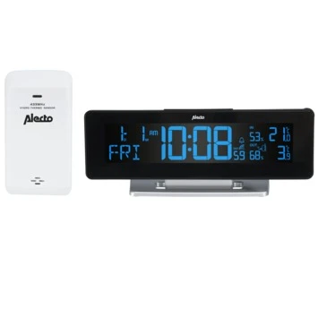 • Het weerstation werkt op de meegeleverde adapter. De buitensensor werkt op 2x AA 1,5 Volt batterijen die niet worden meegeleverd.