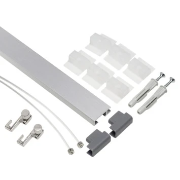 De Artiteq Click Rail is het meest eenvoudige en gebruiksvriendelijke schilderij ophangsysteem en zorgt ervoor dat je altijd flexibel bent in het ophangen van wanddecoratie zonder dat de wand beschadigd raakt. Bij montage dienen de clips op de muur bevestigd te worden en kan de rail op de clips worden geklikt. Dit zorgt voor een zeer nette afwerking. Vervolgens kunnen de transparante ophangdraden met haken via de zijkant in de rail op de gewenste plaats worden geschoven. Wanneer de juiste hoogte van de haken is bepaald kan de wanddecoratie aan de haken worden gehangen. Dit product wordt per complete set geleverd en bevat een Click Rail 200 cm, twee ophangkoorden met een lengte van 150 cm, haken die een draagkracht hebben van 4 kg en al het bevestigingsmateriaal. De rail is aluminium geborsteld. Naast het Artiteq Click Rail schilderij ophangsysteem compleet 2 meter aluminium, is de Click Rail ook in meerdere lengtes en (overschilderbare) kleuren beschikbaar bij GAMMA.