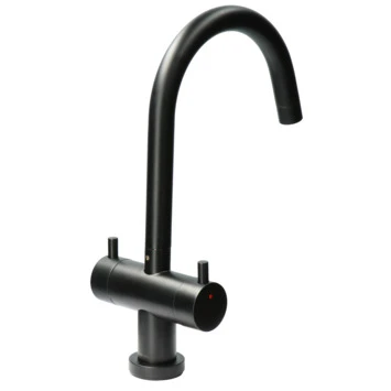 De Atlantic keukenkraan Adrian 2-knops Zwart bestaat uit een mat zwarte keukenkraan van 33,5 cm hoog met 2 flexibele aansluitslangen, bevestigingsmateriaal en montagehandleiding. De Adrian keukenkraan heeft een draaibare uitloop van 360° waarmee je eenvoudig plaats maakt bij je gootsteen. Met de 2 draaiknoppen kies je hoeveel warm of koud water je wil gebruiken. Aan de anti-kalk perlator hecht kalk zich moeilijk vast en veeg je er makkelijk met de hand af. Deze modern vormgegeven kraan heeft een mat zwarte afwerking en ziet er daardoor robuust uit. Gebruik alleen water en een zachte doek om de kraan schoon te maken. Gebruik geen schurend, bijtend, azijnhoudend of agressief schoonmaakmiddel. Besluit je de kraan te kopen? Dan heb je 5 jaar garantie.