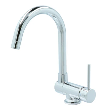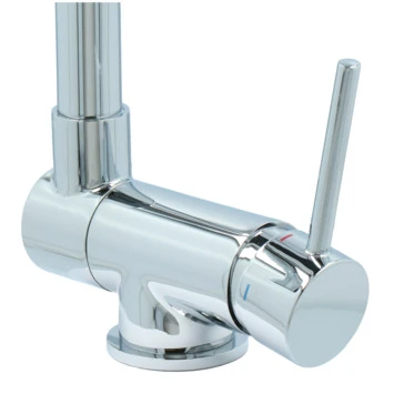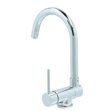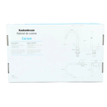De Atlantic keukenkraan Carson met hendel Chroom bestaat uit een glanzende keukenkraan van 30 cm hoog met 2 flexibele aansluitslangen, bevestigingsmateriaal en montagehandleiding. De Carson keukenkraan heeft een draaibare uitloop van 360° waarmee je eenvoudig plaats maakt bij je gootsteen. Ook kun je de uitloop tot 90° naar beneden inklappen, wat heel handig is als je bijvoorbeeld het raam achter de kraan open wil zetten. Met de eenhendelbediening draai je met 1 hand de kraan naar de gewenste temperatuur. Je bespaart water door de ingebouwde eco-klik. Een ingebouwde weerstand in de hendel zorgt ervoor dat je de kraan niet direct op de hoogste straalstand zet. Wens je toch een hardere straal, dan zet je de hendel verder open. Aan de anti-kalk perlator hecht kalk zich moeilijk vast en veeg je er met de hand af. Deze keukenkraan heeft een mooie glanzende chromen afwerking. Gebruik alleen water en een zachte doek om de kraan schoon te maken. Gebruik geen schurend, bijtend, azijnhoudend of agressief schoonmaakmiddel. Op de kraan heb je 5 jaar garantie.