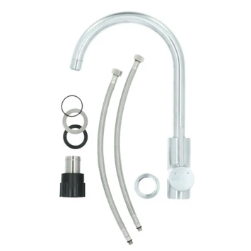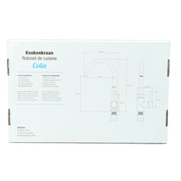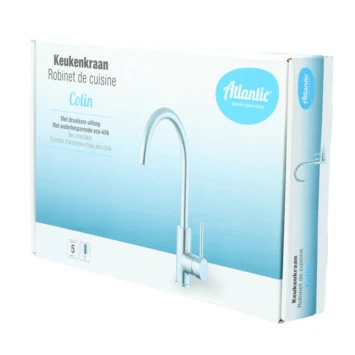 De Atlantic keukenkraan Colin met hendel RVS bestaat uit een matte geborstelde keukenkraan van 35,7 cm hoog met 2 flexibele aansluitslangen, bevestigingsmateriaal en montagehandleiding. De Colin keukenkraan heeft een draaibare uitloop van 360° waarmee je eenvoudig plaats maakt bij je gootsteen. Met de eenhendelbediening draai je met 1 hand de kraan naar de gewenste temperatuur. Je bespaart water door de ingebouwde eco-klik. Een ingebouwde weerstand in de hendel zorgt ervoor dat je de kraan niet direct op de hoogste straalstand zet. Wens je toch een hardere straal, dan zet je de hendel verder open. Aan de anti-kalk perlator hecht kalk zich moeilijk vast en veeg je er met de hand af. Deze keukenkraan heeft een mooie geborstelde RVS afwerking. Gebruik alleen water en zachte doek gebruiken om de kraan schoon te maken. Gebruik geen schurend, bijtend, azijnhoudend of agressief schoonmaakmiddel. Op de kraan heb je 5 jaar garantie.