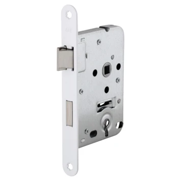 Een goed slot om binnendeuren mee af te sluiten, dat is dag -en nachtslot 56 mm voorplaat wit. Het maakt niet uit of je deur naar links, rechts, binnen of buiten opent, dit dag- en nachtslot past overal en altijd. Het slot is afgewerkt in witgelakt staal, dus erg sterk en valt niet op in een witte deur. Dit slot heeft een doornmaat – maat vanaf de voorkant van de voorplaat tot het midden van het cilindergat – van 50mm. Met de meegeleverde sleutel sluit je jouw binnendeur voortaan eenvoudig af. De slotkast is 8×11,7cm en de voorplaat 2×17,5cm. Kortom: een handig dag- en nachtslot dat in iedere binnendeur past.