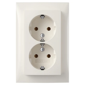 De Berker S1 wandcontactdoos randaarde dubbel crème kun je gebruiken om elektrische apparaten te voorzien van stroom. De ‘aarde’ zorgt ervoor dat, in geval van kapotte- of losgeschoten bedrading in een apparaat (bv. wasmachine of computer), de metalen delen niet onder stroom komen te staan. De stroom wordt dan via een extra aardedraad in de aarde geleid. Op deze dubbele contactdoos kun je twee apparaten of lampen aansluiten.