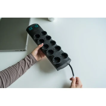 Komt u contactdozen tekort in huis of op kantoor? Installeer dan de 10-voudige stekkerdoos van Brennenstuhl. Hierop sluit u maar liefst 10 elektronische apparaten tegelijkertijd aan. Doordat de stopcontacten in een hoek van 45 graden zijn geplaatst, vallen de stekkers niet over naastliggende stopcontacten en kunt u de stekkerdoos ten volle benutten. De zwarte stekkerdoos heeft twee verlichte schakelaars en een snoer met een lengte van 2 meter. Met behulp van de schakelaars stopt of start u de stroomtoevoer. De 10-voudige stekkerdoos is gemaakt van sterk kunststof. Stijlvol en vormvast. Met de 10-voudige zwarte stekkerdoos sluit u bijvoorbeeld uw computer, printer en beeldscherm aan op één contactdoos.