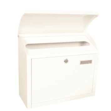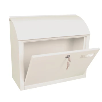 Wandbrievenbus van gepoedercoat gegalvaniseerd staal voorzien van cilinderslot en naamplaathouder. De inworpopening (34 x 4,5 cm) bevindt zich onder de klep, waardoor de post beschermd is.