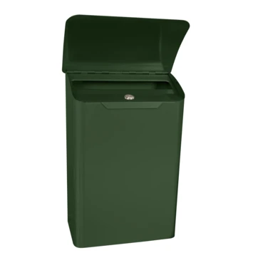 De V-part Wandbrievenbus Lugon is van gepoedercoat gegalvaniseerd staal in de kleur groen. Is Voorzien van cilinderslot met 2 sleutels aan de bovenzijde onder de klep. Ook de inworpopening met een afmeting van 25 x 4 cm, bevindt zich aan de bovenzijde onder de klep.