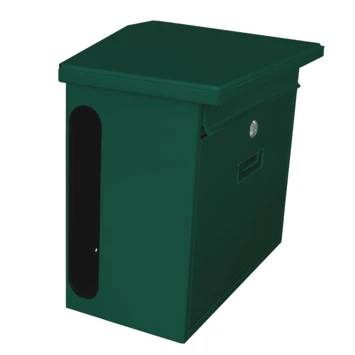 Deze handige V-part Zamoran wandbrievenbus in de kleur groen is van gepoedercoat gegalvaniseerd staal is voorzien van cilinderslot en naamplaathouder. De inworpopening bevindt zich achter de klep aan de voorzijde en heeft een inworpopening van 32x2cm. Ook is deze brievenbus voorzien van een handige krantenvak aan de achterzijde van de brievenbus.