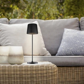 De lamp plaats je op de meegeleverde docking station om op te laden en kan na het opladen binnen of buiten snoerloos worden gebruikt. De buitenlamp beschikt over een IP-waarde van IP44 en is daarmee geschikt voor beschutte plekken buiten.