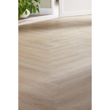 Bruynzeel Visgraat Maastricht is een hoogwaardige PVC vloer met de uitstraling van een écht houten visgraatvloer, maar dan met alle voordelen die een PVC vloer van nature biedt. De vloeren zijn voorzien van een klikverbinding waardoor ze eenvoudig zelf te plaatsen zijn. De Bruynzeel Visgraat vloer is slechts 4 mm dik, dus ideaal voor renovatie. Deze vloer is 100% waterbestendig, dus ideaal voor gebruik in vochtige ruimtes zoals de badkamer, toilet of keuken. Bovendien is de vloer ideaal voor gebruik in combinatie met vloerverwarming.