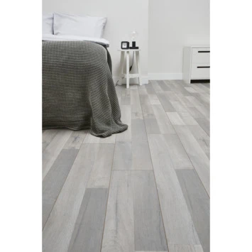 Het Bruynzeel Origineel Plus Laminaat grappig grijs 4V-Groef 8 mm 2,4 m² heeft een voelbare houtstructuur en een rustieke uitstraling. De vloer heeft een klikverbinding, waardoor het leggen van het laminaat eenvoudig is en deze een naadloos effect heeft. Daarnaast kan je de vloer zwevend leggen, waardoor deze niet aan de ondervloer hoeft te worden gelijmd. Laminaat is zeer onderhoudsvriendelijk omdat het eenvoudig te reinigen is. Dit kliklaminaat is geschikt voor intensief woongebruik en normaal commercieel gebruik.