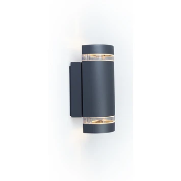 Donkergrijs rond licht met een zachte en glanzende uitstraling. De juiste positie van de led module garandeert het perfecte lichtpatroon voor deze wall washer.