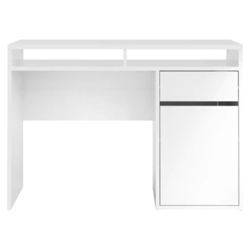 De bureau Eline is gemaakt van hout en het heeft een witte kleur. Het bureau is in twee kleuren verkrijgbaar, wit en zwart. Het bureau Eline is een modern en stoere bureau die zowel in een tienerkamer als in een volwassen kantoor past, maar ook in de woonkamer of studeerkamer. Het bureau Eline heeft een groot blad en een lade voor opbergruimte, het is ideaal om aan te studeren of te werken. Het tafelblad is groot genoeg voor bijvoorbeeld: een lamp, computer, schrijfgerief, notitieboekje. De hoogte van de bureau Eline is 78,4cm, de diepte is 48,2cm en de breedte is 1,102cm.