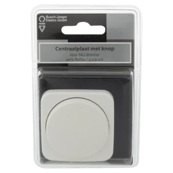 Met de Busch-Jaeger Reflex SI Centraalplaat Dimmer Wit maakt je je dimmer weer compleet als deze beschadigd of incompleet is geraakt. De dimmerknop met plaat past op elk dimmer basiselement uit de Busch-Jaeger serie. De dimmer basiselementen zijn los leverbaar.