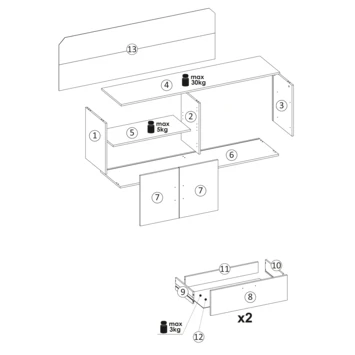 De vakkenkast wordt geleverd in twee pakketten met een duidelijke montagehandleiding. Plaats voor het beschermen van harde vloeren viltglijders aan de onderzijde.