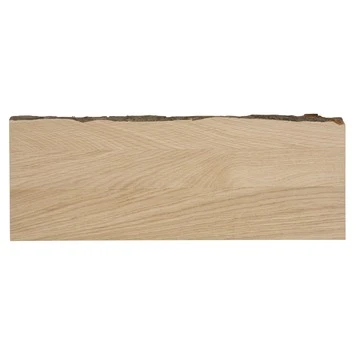 Deze wandplank is van eiken met een schors aan de buitenkant. Daardoor oogt de plank stoer en natuurlijk aan.