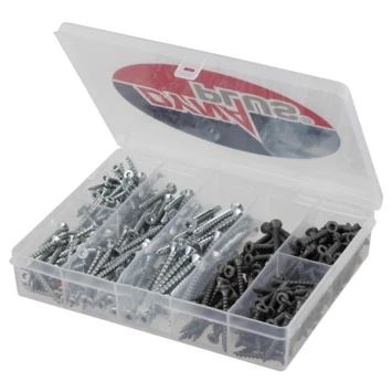 Alles voor de klus in deze handige kunststof organizer gevuld met kwaliteitsschroeven van Dynaplus. Deze 7-vaks assortimentsverpakking is gevuld met 325 schroeven voor zowel binnen- als buitengebruik. De bijpassende TX-bitjes zijn meegeleverd. Zo heb je altijd een handige set in de schuur of in de kast voor de kleine klus in en rondom huis. Inhoud organizer: Unischroeven indoor verzinkt platkop TX-drive : 3.5×25 – 60 st. / 4.0×30 – 35 st. / 4.0×40 – 50 st. / 5.0×50 – 30 st. Unischroeven outdoor AR-coating Platkop TX-drive : 4.0×20 – 60 st. / 4.0×30 – 40 st. / 4.0×40 – 50 st.