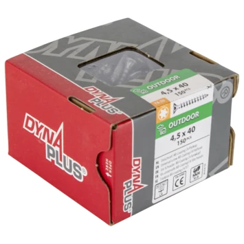 Zoek je een multifunctionele schroef met een torx-aandrijving voor gebruik buitenshuis? Ga dan voor deze Dynaplus Schroef Universeel Platkop AR coating TX-25 4.5X40 150 Stuks. De universeelschroef, ook wel spaanplaatschroef genoemd, is veruit de meestgebruikte schroef voor hout en plaatmateriaal. Deze schroef is afgewerkt met een platkop, wat inhoudt dat hij een taps toelopend gedeelte onder de kop heeft die mooi in het materiaal wegzakt. Deze Dynaplus-schroef is gemaakt van gehard carbonstaal met daaroverheen een gepatenteerde Anti-Roest-coating, waardoor de schroef maar liefst 2x zo sterk is als roestvaststalen schroeven. De schroef heeft een zespuntige torxkop van het type T20. Je kunt hem dus met een torx-bitje of schroevendraaier indraaien, die bekend staan om hun goede grip en lage indraaiweerstand. Voor extra schroefgemak is deze Dynaplus-schroef voorzien van een extra waxlaag en heeft hij een speciale ‘cross-section’ aan de punt, dat splijten van hout tijdens het inschroeven voorkomt. Dit product is bedoeld voor gebruik buitenshuis en wordt verkocht per 150 stuks, dus je hebt altijd een schroef achter de hand. Kortom: optimaal schroefgemak buitenshuis met deze universele schroef van Dynaplus.