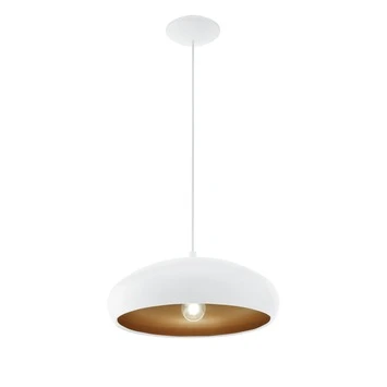 De EGLO hanglamp MOGANO 1 voor diverse woonruimtes is 110 cm. Deze lamp is gemaakt van staal en is afgewerkt in de kleur wit, koper.