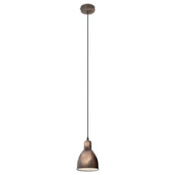 De EGLO hanglamp Priddy koper 1-lichts is de perfecte lamp voor een vintage interieur. De gebruikte look zorgt voor een authentiek gevoel vanaf het moment dat je de lamp ziet. In het armatuur van de lamp past een E27 (grote fitting) lichtbron, deze wordt niet meegeleverd. Deze lichtbron mag maximaal 60 watt zijn.