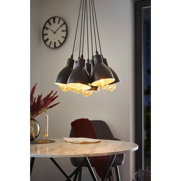 Deze Priddy Hanglamp van het merk Eglo, heeft een modern ontwerp. De lamp is zwart met wit gekleurd en is gemaakt van metaal. Deze lamp heeft 7 lichtpunten. Dat maakt het nog mooier en geeft het een mooi aanzicht in het interieur. De verlichtingsbron heeft een E27 fitting en een maximale wattage van 60W. De beschermingsklasse waar deze lamp onder valt is IP20. Dit houdt in dat het product stofdicht is en geschikt is voor binnengebruik. Kortom, de Eglo hanglamp is een prettige verlichtingsbron voor in de woonruimte.