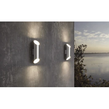 De EGLO wandlamp Agolada met geïntegreerde LED modules, geschikt voor buiten. Deze lamp is gemaakt van roestvast staal en is afgewerkt in de kleur roestvast staal en wit. En wordt geleverd inclusief energiezuinige LED lichtbron(nen).