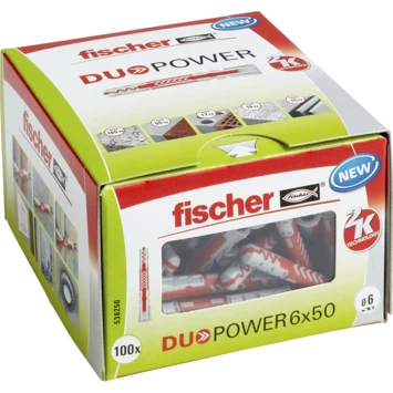 De Duopowerplug 6×50 mm is geschikt voor zowel voor- als doorsteekmontage. Meer materiaal in de plug voor nog meer spreiding en nóg hogere belastbaarheid. De combinatie van een harde en zachte kunststof garandeert een optimaal gebruiksgemak, zeer gemakkelijke plaatsing en bovendien een duidelijke feedback wanneer de plug correct geplaatst is. Geschikt voor hout- , spaanplaat- én stokschroeven. Schroeflengte = pluglengte + dikte aanbouwdeel + 1x schroefdiameter. In het geval van plaatmateriaal dient het gladde deel van de schroef niet langer te zijn dan de dikte van het aanbouwdeel. De combinatie van 2 materialen en 3 werkingsprincipes maakt de DUOPOWER de juiste plug voor alle omstandigheden. De plug activeert het optimale werkingsprincipe – spreiden, vouwen, knopen – afhankelijk van de ondergrond. Best mogelijke terugkoppeling van de plug, het is duidelijk voelbaar wanneer de schroef goed is aangedraaid. De korte en compacte plug staat voor minimale boortijd en bespaart daarmee materiaal én tijd. De dunne kraag voorkomt dat de plug in het boorgat verdwijnt bij gebruik in holle wanden, terwijl doorsteekmontage nog steeds mogelijk blijft. De vertande anti-rotatievleugels voorkomen dat de plug tijdens montage in het boorgat meedraait. Verpakking is 100 stuks.