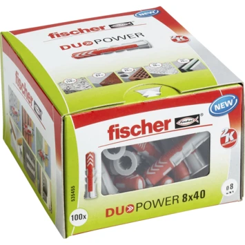 De Duopowerplug 8×40 mm is geschikt voor zowel voor- als doorsteekmontage. Meer materiaal in de plug voor nog meer spreiding en nóg hogere belastbaarheid. De combinatie van een harde en zachte kunststof garandeert een optimaal gebruiksgemak, zeer gemakkelijke plaatsing en bovendien een duidelijke feedback wanneer de plug correct geplaatst is. Geschikt voor hout- , spaanplaat- én stokschroeven. Schroeflengte = pluglengte + dikte aanbouwdeel + 1x schroefdiameter. In het geval van plaatmateriaal dient het gladde deel van de schroef niet langer te zijn dan de dikte van het aanbouwdeel. De combinatie van 2 materialen en 3 werkingsprincipes maakt de DUOPOWER de juiste plug voor alle omstandigheden. De plug activeert het optimale werkingsprincipe – spreiden, vouwen, knopen – afhankelijk van de ondergrond. Best mogelijke terugkoppeling van de plug, het is duidelijk voelbaar wanneer de schroef goed is aangedraaid. De korte en compacte plug staat voor minimale boortijd en bespaart daarmee materiaal én tijd. De dunne kraag voorkomt dat de plug in het boorgat verdwijnt bij gebruik in holle wanden, terwijl doorsteekmontage nog steeds mogelijk blijft. De vertande anti-rotatievleugels voorkomen dat de plug tijdens montage in het boorgat meedraait. Verpakking is 100 stuks.