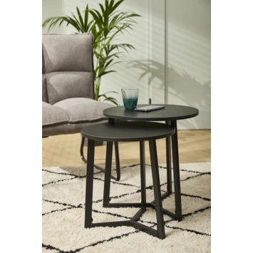 Bijzettafel Albert bestaat uit 2 stuks. De ronde tafels hebben 2 verschillende formaten en hoogtes waardoor ze samen een speels uiterlijk hebben. De tafels zijn vervaardigd uit zwart metaal, met een zwart MDF tafelblad.