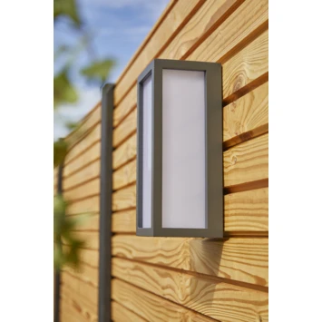 De GAMMA buitenlamp Birmingham is een eenvoudige, strakke buitenlamp. De lamp geeft door zijn vermogen van 18W een sfeervolle verlichting. Het design van de grafieten aluminium lamp zorgt er voor dat er zowel naar voren, als naar beneden licht wordt gericht. Daarnaast beschikt de lamp over een beschermingsklasse van IP54 waardoor deze vrijwel overal rondom uw huis en tuin geplaatst kan worden. Kortom, de GAMMA buitenlamp Birmingham is een mooie, sfeervolle buitenlamp die bij ieder huis past.