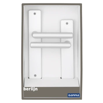Deze GAMMA deurkrukset voor binnendeuren maakt onderdeel uit van de serie Berlijn. GAMMA verkoopt ook bijpassend deurbeslag met wc sluiting of sleutelgat binnen deze serie. Ideaal voor het afsluiten van uw wc of badkamer en bijvoorbeeld uw trap- of meterkast. De deurkrukset is gemaakt van een hoogwaardige kwaliteit aluminium. Deze GAMMA deurkrukset is vast gemonteerd op het schild, de kruk kan dus niet zomaar van de deur getrokken worden.
