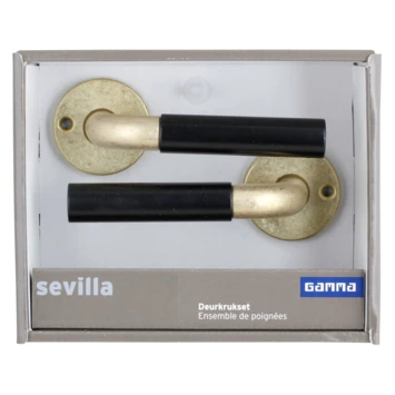 Bij de GAMMA deurkukset Sevilla op rond rozet, verkoopt GAMMA ook bijpassende sleutelplaatjes of wc garnituur. Ideaal voor het afsluiten van uw wc of badkamer en bijvoorbeeld uw trap- of meterkast. De deurkrukset is gemaakt van messing en voorzien van een zwarte kruk. Deze GAMMA deurkrukset is vast gemonteerd op het rozet, de kruk kan dus niet zomaar van de deur getrokken worden. De montage is voor bijna alle modellen gestandaardiseerd. Veelal kunt u uw oude deurkrukken op rozet zonder boren vervangen door GAMMA deurkrukken op rozet.