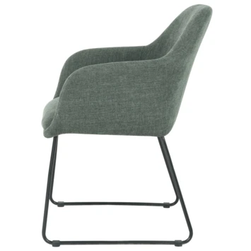 Ontdek de stijlvolle Eetkamerstoel Lotte: een prachtig gestoffeerde stoel met een warm groene bekleding en elegante zwarte metalen poten. De combinatie van de zachte kleur en het moderne design maakt Lotte een perfecte aanvulling op elke eetkamer.