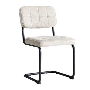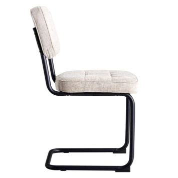 Maak kennis met de elegante en stijlvolle Tom stoel. Met de grijze gestoffeerde bekleding en zwarte metalen poten creëert de Tom stoel een moderne en tijdloze sfeer. Deze veelzijdige stoel past perfect bij diverse interieurstijlen, van modern tot klassiek. Of je nu een moment voor jezelf neemt in de woonkamer of gasten verwelkomt aan de eettafel, deze stoel biedt een comfortabele zitervaring.