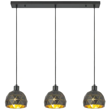 De hanglamp Niels is geschikt voor 3 lichtbronnen met een maximale wattage van 60 Watt met een E27 fitting, ook wel ‘gewone’ draaifitting genoemd. De hanglamp is gemaakt van metaal in de kleuren zwart en goud. De lamp wordt geleverd exclusief lichtbron.