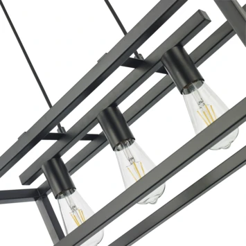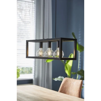 De hanglamp Simone is geschikt voor 3 lichtbronnen met een maximale wattage van 60 Watt met een E27 fitting, ook wel een ‘gewone’ draaifitting genoemd. De hanglamp heeft een modern design gemaakt van metaal in de kleur zwart. De lamp wordt geleverd exclusief lichtbron.