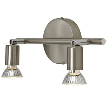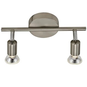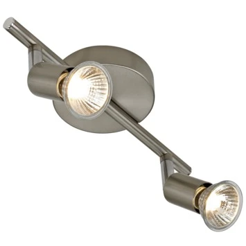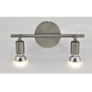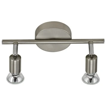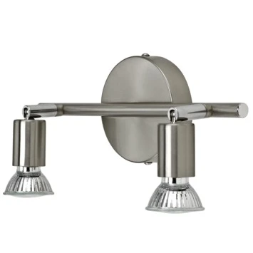 Deze GAMMA opbouwspot Amalfi 2-lichts is een zeer geschikt model om die ene mooie kast te verlichten en tevens een spot te richten op die donkere hoek van de kamer. Deze 2 lichts is een tijdloos model dat door zijn nikkelkleurig design zeer passend is in ieder interieur. Hij is geschikt voor zowel LED als halogeen met een maximuml van 40 Watt. Amalfi is ook uitgevoerd in een 3-lichts model en als enkel spot. Bekijk hiervoor, en de juiste (GU10) lichtbron, ons assortiment.