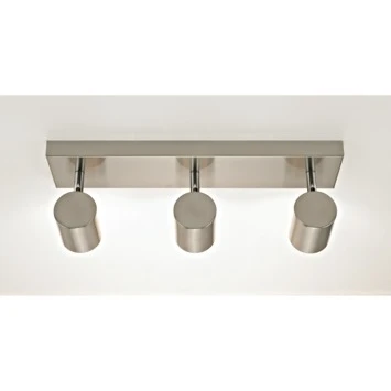 De GAMMA opbouwspot Genua 3-lichts is een plafondlamp voor binnenshuis die met zijn strakke design perfect past in een modern interieur. De 3 cilindervormige spots zijn geschikt voor maximaal 35Watt. Deze nikkelkleurige spots zijn draaibaar waardoor de lamp perfect af te stellen is in de gewenste richting. Genua is een complete serie met zowel 2-lichts als 1 lichts en uitgevoerd in het mat wit.