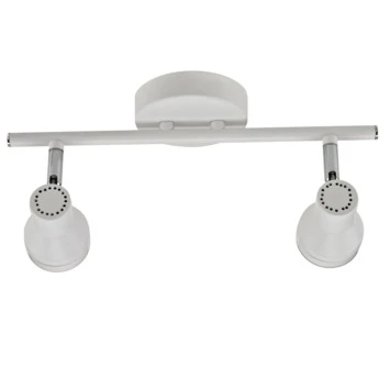 Deze GAMMA opbouwspot Livorno 2-lichts geeft eenvoudig stijl aan je gang of slaapkamer. Laat zijn koppen richten op een kast of schilderij dat eruit mag springen. Zijn zuinige geïntegreerde LED produceert 2 x 350 lumen, wat een warm witte kleur geeft. De witte Livorno is er één uit een serie, deze lamp is ook te verkrijgen met 3 spotjes en 1 spot. Bekijk hiervoor ons ruime assortiment binnenverlichting.