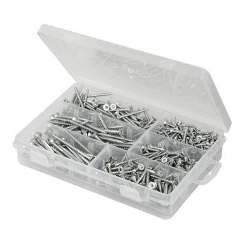 Deze platkopschroeven van GAMMA zijn gemaakt van verzinkt staal en universeel te gebruiken. Ze hebben een platverzonken kop en een torx-aandrijving. U kunt deze standaardschroeven dus gebruiken met een torx schroevendraaier. De verpakking bevat zowel voldraadschroeven als deeldraadschroeven, zodat u altijd de beste schroef kunt kiezen voor uw klus. Beide zijn voorzien van een waslaag voor een betere verwerking. De handige opbergdoos bevat schroeven in de maten 3,5x16mm, 3,5x25mm, 4x30mm, 4x40mm, 5x50mm en 5x60mm: 550 stuks in totaal. Ze zijn zowel binnen als buiten te gebruiken in spaanplaat en hout.