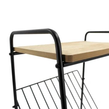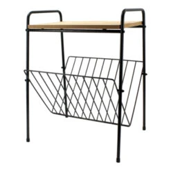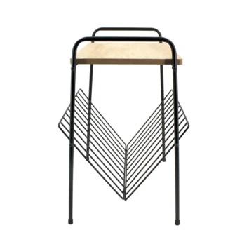 Dit kleine tijdschriften rekje is de ideale plek om je kranten en tijdschriften in te leggen. Het frame is gemaakt van metaal met een houten blad.