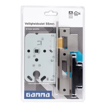 Op zoek naar een betrouwbaar cilinderinsteekslot? Ga dan voor het GAMMA cilinder insteekslot set SKG** 55 mm. Dit slot heeft een doornmaat – maat vanaf de voorkant van de voorplaat tot het midden van het cilindergat – van 50mm en is geschikt voor in de buitendeur. Het slot is voorzien van het keurmerk van SKG**(Stichting Kwaliteit Gevelbouw), wat dit slot extra veilig maakt. Het slot bestaat uit zowel een insteekslot met dag- en nachtschroot, een sluitkom en sluitplaat. De complete slotkast is gemaakt van gegalvaniseerd staal, wat het geheel corrosiebestendig maakt. Dankzij de meegeleverde schroeven kun je het slot eenvoudig zelf ophangen. Het maakt niet uit of je deur naar links, rechts, binnen of buiten opent, dit slot past overal en altijd. Kortom: een uitstekende basis voor een goede deurbeveiliging.