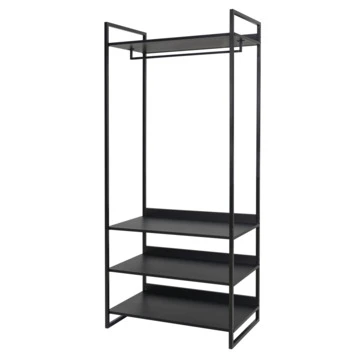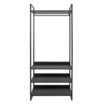 Wandrek Nigel is een multifunctioneel rek. Je kan het gebruiken als extra garderoberuimte of gebruik het in de hal. Het wandrek is samengesteld uit een metalen frame met houten planken.