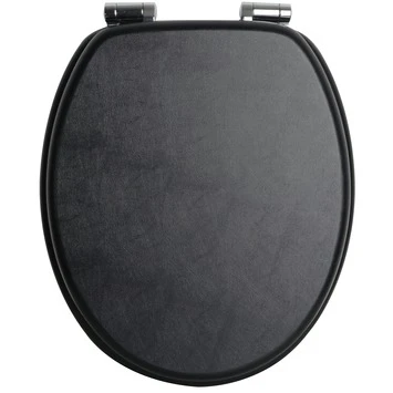 De Handson WC bril Antero is gemaakt van hout maar door de speciale bewerking lijkt het alsof deze van zwart leder is gemaakt. De metalen softclose scharnieren zorgen ervoor dat de zitting zacht en geruisloos dicht valt en voorkomen daardoor beschadigingen aan het keramiek. De zitting is geschikt voor bijna ieder standaard toilet en eenvoudig te monteren met de bijgeleverde bevestigingsset.