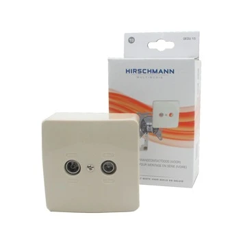 De GEDU 15 is een wandcontactdoos van Hirschmann voor een rijgsysteem met 15 dB demping voor CAI en/ of SAT. Deze wandcontactdoos heeft 2 uitgangen, welke beide het gehele frequentiebereik (5-2400 MHz) doorgeven. Indien de wandcontactdoos wordt gebruikt als einddoos, dan dient de doorlusuitgang afgesloten te worden met een afsluitweerstand R77. Ongebruikte uitgangen dienen afgesloten te worden om instraling van ongewenst signaal tegen te gaan. Dit artikel wordt geleverd met opbouwrand en afdekplaat Deze wandcontactdoos heeft de zogenaamde pushlock technologie zodat de kabel snel, gemakkelijk en goed vastgezet kan worden met een druk op de knop. Het montage frame is universeel toepasbaar met alle bekende merken van in- en opbouw materiaal. De hoeken zijn afbreekbaar voor ronde inbouwdozen. De diepte en diameter van de doos is teruggebracht om installatie in half diepe inbouwdozen mogelijk te maken of om overtollige kabel weg te werken.