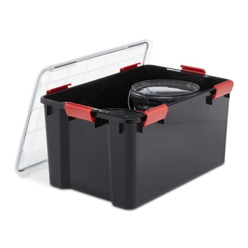 Deze Airtight opbergbox van Iris Ohyama is luchtdicht afsluitbaar dankzij de speciaal ontworpen deksel en 6 stevige sluitingen. De box heeft een inhoud van 50 liter en is gemaakt van stevig materiaal. De transparante deksel is extra sterk dankzij een gestructureerd design en heeft een Hotmelt sealing rand aan de binnenkant van de deksel. Zeer geschikt voor het opbergen van spullen in de kelder of garage waar geen lucht bij mag komen. Ook ideaal voor op de camping.