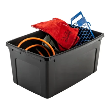 De box is aan de buitenkant uitgevoerd in zwart plastic. De boxen zijn stapelbaar.