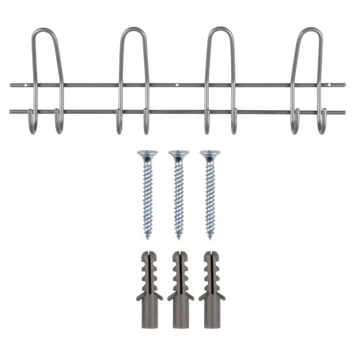 Deze degelijke kapstok gemaakt van staal is grijs afgewerkt en heeft 8 haken.