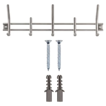 Deze moderne kapstok is voorzien van 5 haken en is gemaakt van RVS.