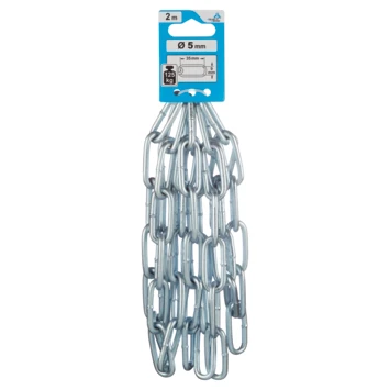 Deze universele stalen ketting kan gebruikt worden voor diverse doeleinden. De ketting is gegalvaniseerd waardoor het minder gevoelig is voor corrosie en krassen. De ketting gesmeed korte schakel C-50 2 meter heeft schakels van 32mm met een diameter van 5mm. De maximale draagkracht is 125 kilogram. Dit maakt de ketting geschikt om er zware dingen aan op te hangen of om dingen mee te hijsen of trekken. Kortom, de gesmeden ketting kent vele toepassingen.